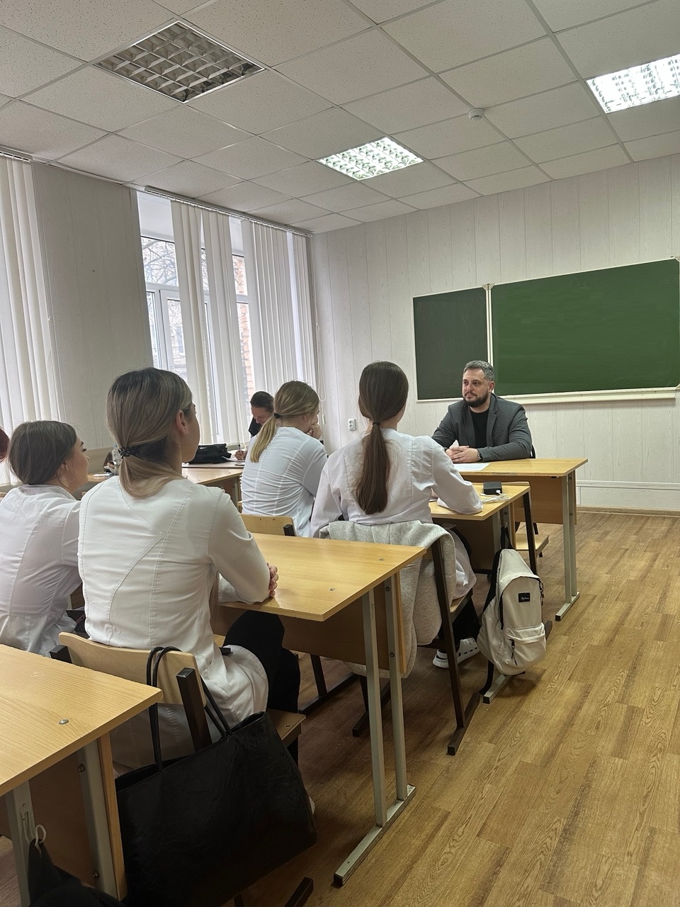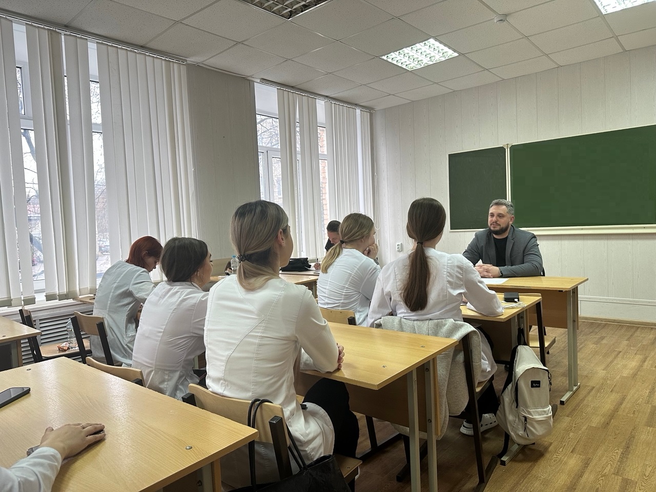 9 апреля 2026 г. состоялась беседа главного врача ТОГБУЗ "Староюрьевская ЦРБ" Ильи Михайловича Жабина с выпускниками ТОГБПОУ "Тамбовский областной медицинский колледж".