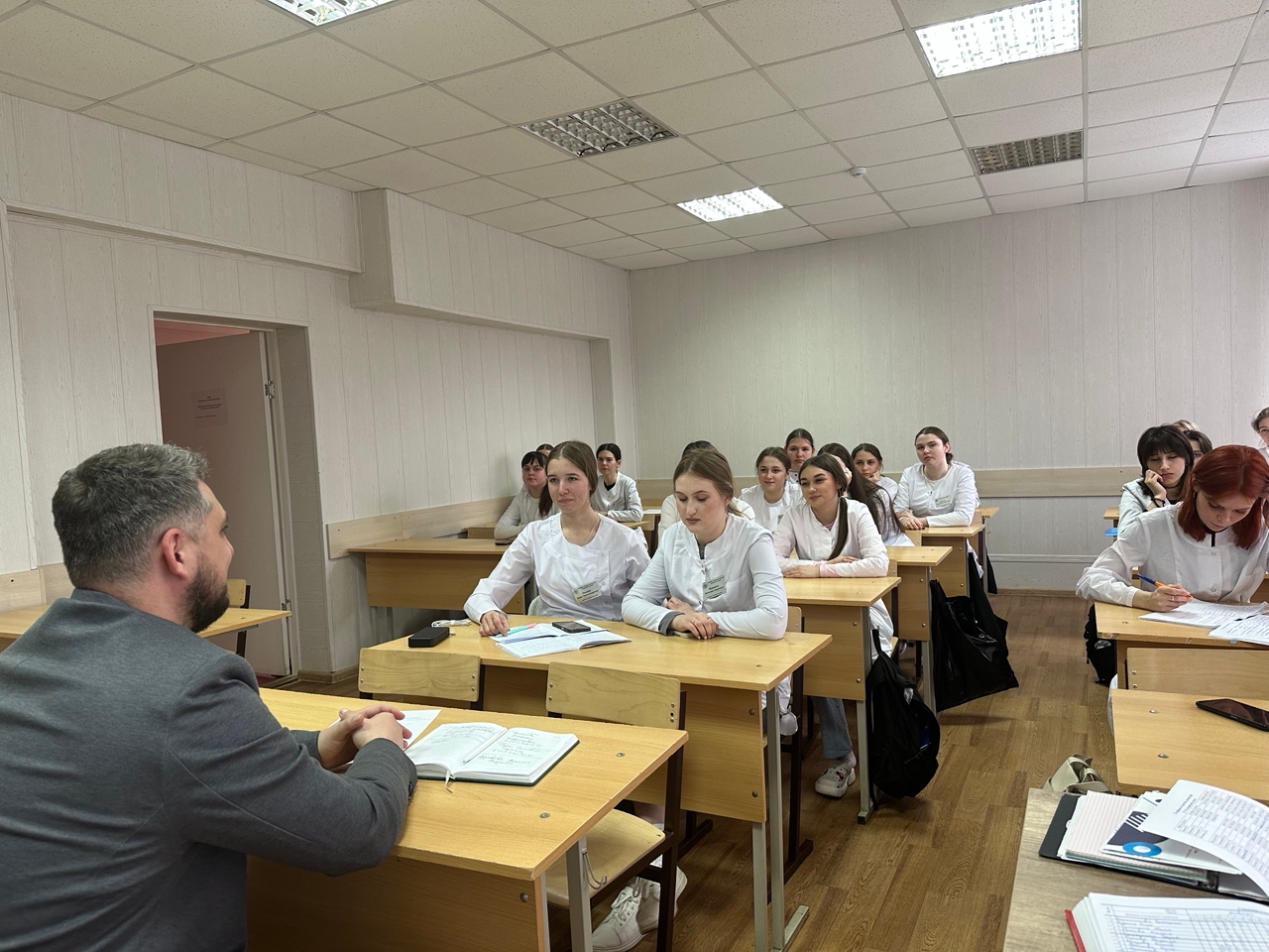 Главный врач представил обзор структурных подразделений учреждения, обозначил актуальные вакансии и ответил на вопросы выпускников. Особое внимание было уделено роли молодых кадров в развитии системы здравоохранения региона.